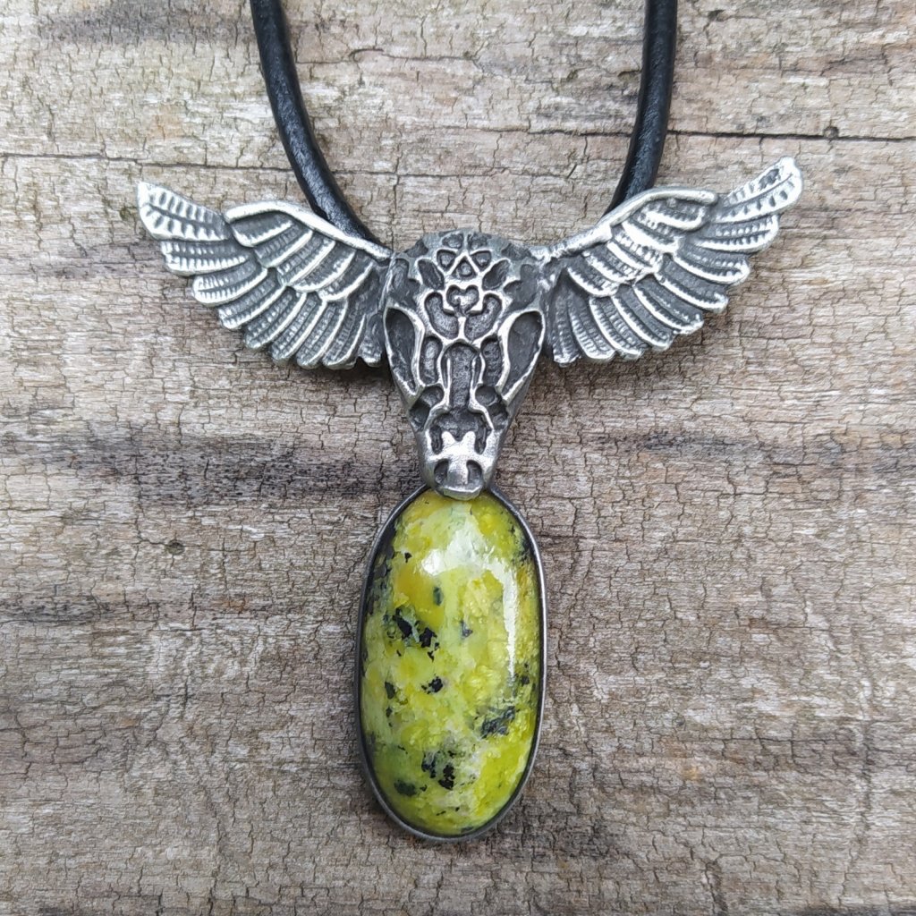 Vznikl Drak nesoucí krásný kabošon LIZARDITU. Kámen z dílny Saffron.