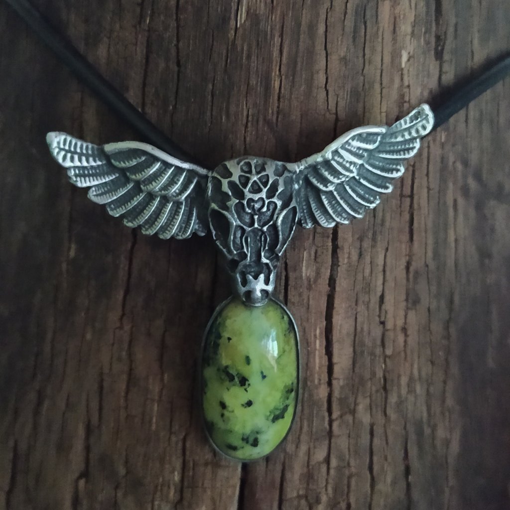 Vznikl Drak nesoucí krásný kabošon LIZARDITU. Kámen z dílny Saffron.
